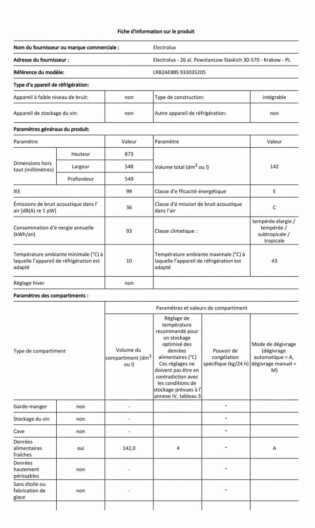 | Conso. d’énergie annuelle (kWh/an) | 93 |