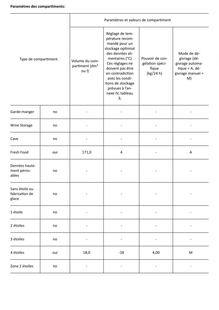 | T°C recommandée pour stockage optimisé des denrées alimentaires dans compartiment 4 étoiles (°C) | -18 |